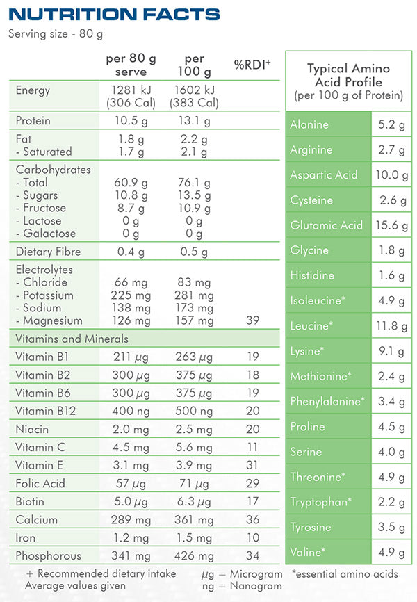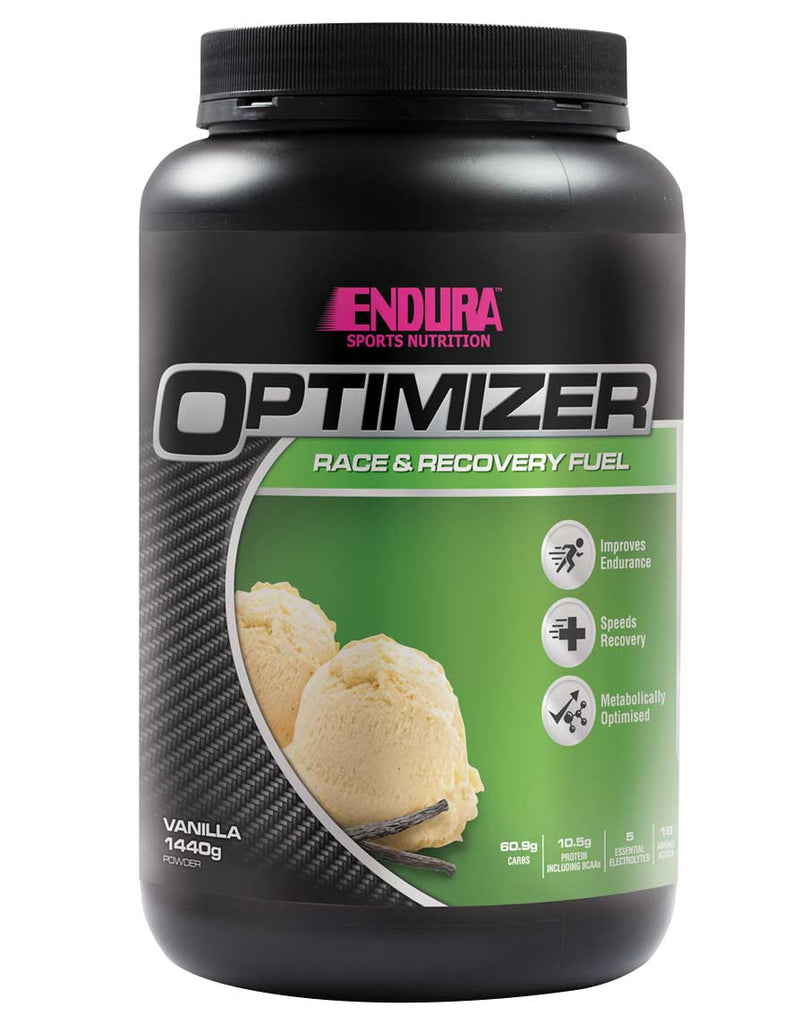 Endura Optimizer contains a specially balanced blend of high performance branched-chain glucose polymers and pure crystalline fructose. These multiple energy sources are metabolised at different rates, resulting in a steady stream of nutrients being supplied to the bloodstream for prolonged periods after consumption. This greatly enhances endurance and helps stabilise blood sugar levels.