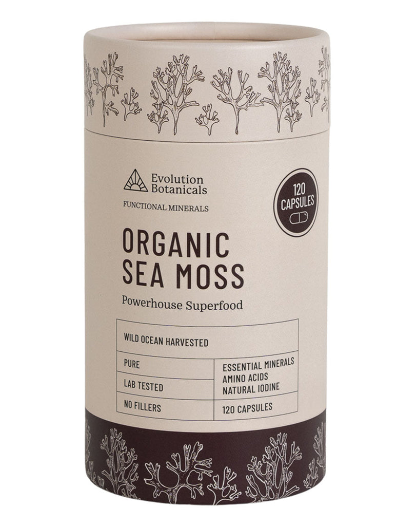 Unlock the benefits of Organic Sea Moss by Evolution Botanicals, a wild ocean-harvested red algae sourced from the Pacific Coast. This nutrient-rich superfood is packed with essential minerals, amino acids, and natural iodine, providing a convenient, plant-based capsule alternative to powders or resins. With no fillers, no taste, and rigorous lab testing, these capsules offer an easy way to support your daily wellness.