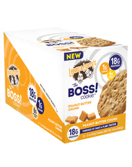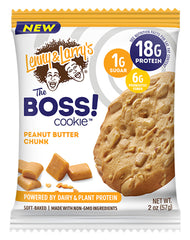 Peanut Butter Chunk Boss Cookie by Lenny & Larry’s is a convenient source of dairy and plant-based proteins. Loaded with 18g of protein, but with 1g of sugar, this cookie will show your hunger who's The BOSS! Our Peanut Butter Chunk flavour is a peanut butter lover’s dream with peanut butter, chopped peanuts, and peanut butter chunks. The BOSS! cookie is made with non-GMO ingredients and includes 6g of prebiotic fibre to help support gut health.