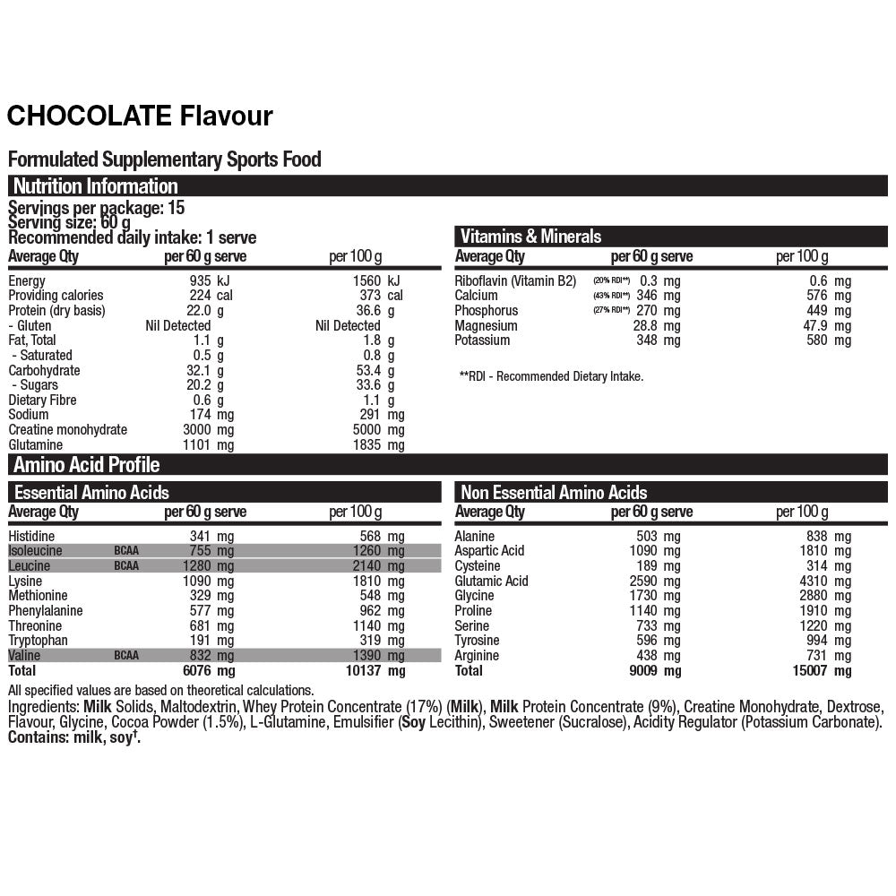 Directions: Add 60 g (approximately two heaped scoops) to 250-350 ml of cold water or milk of choice. Pre-workout fuel: 2 scoops (60 g) with water 60min before training. Post-workout recovery: 2 scoops (60 g) with water or milk (and milk alternatives) 15 minutes after training. Daily protein snack: 2 scoops (60 g) with water, milk (and milk alternatives), smoothies or added to your favourite recipe to increase daily protein intake and control hunger and cravings.