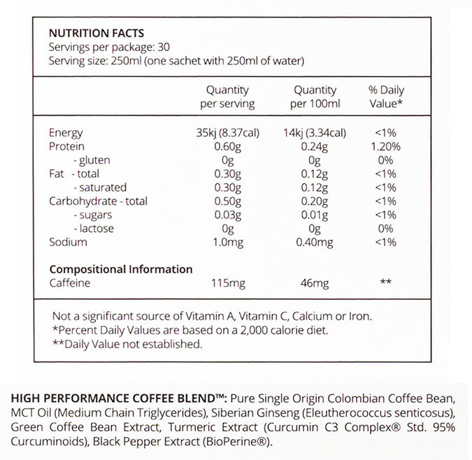 This unsweetened high performance coffee blend will also help to improve performance and wellbeing with just one cup of this delicious coffee. The combination of ingredients will improve metabolism as well as provide your body with anti-inflammatory properties.