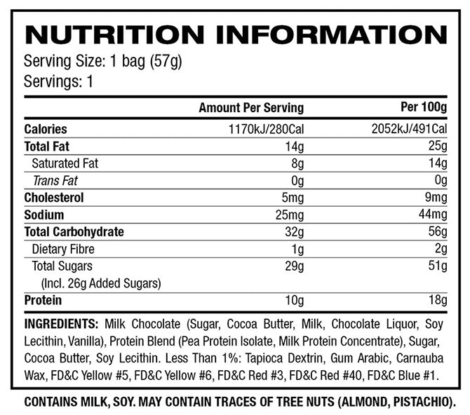 Each serve (1 bag/57g) of Protein Candies by Muscle Pharm has:
