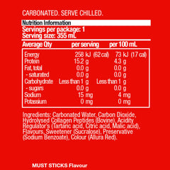 These protein waters are not just seriously delicious; they're also your ideal companion in reaching your fitness goals. Each can boast 15.2g of protein derived from hydrolysed collagen peptides, with just 62 calories per serving. With less than 1g of carbohydrates and zero sugar, you'll relish this refreshing protein water beverage.