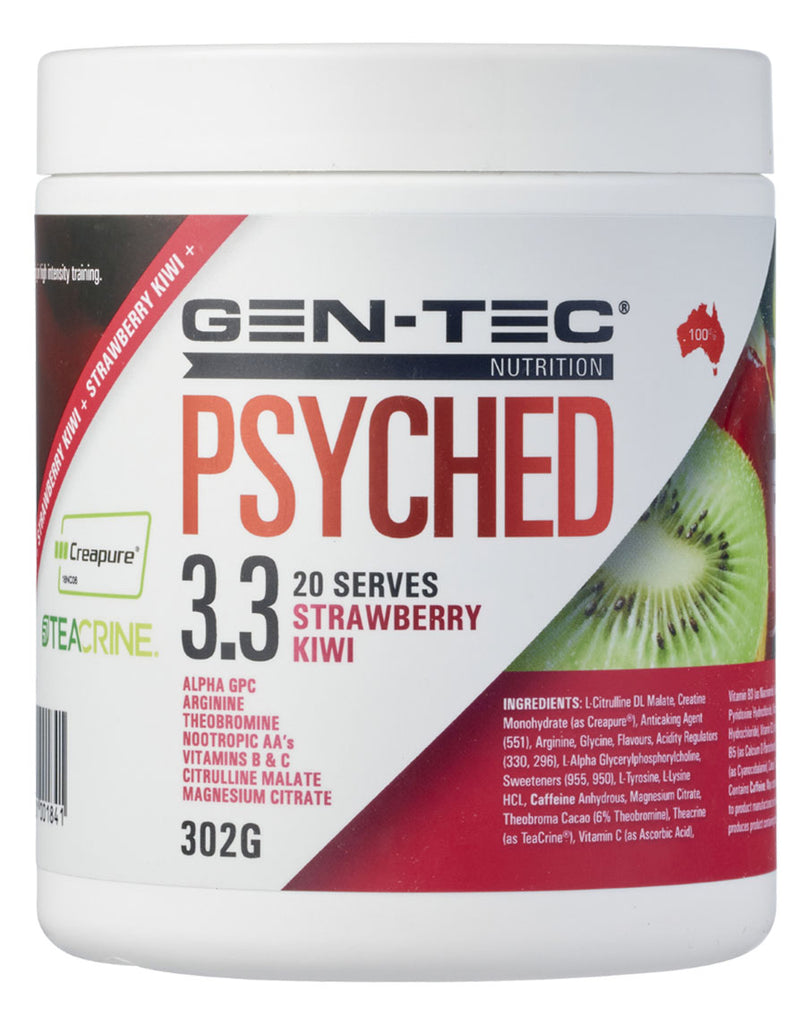 Unlock the next level of your workout with Psyched 3.3 by Gen-Tec Nutrition. This reformulation is not a compromise; it's an evolution! Tailored to support determination, output, pump and focus during challenging workouts, Psyched 3.3 by Gen-Tec Nutrition boasts a synergistic blend that could contribute to lean muscle mass and elevate muscle pump. With added benefits for attention, memory and attentiveness, this formula is designed to avoid those pesky post workout crashes and support sustained determination.