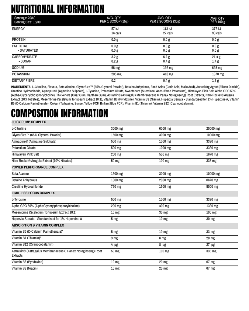 Pump Juice contains nootropics that help support focus and alertness, helping you stay mentally dialled in throughout your session.