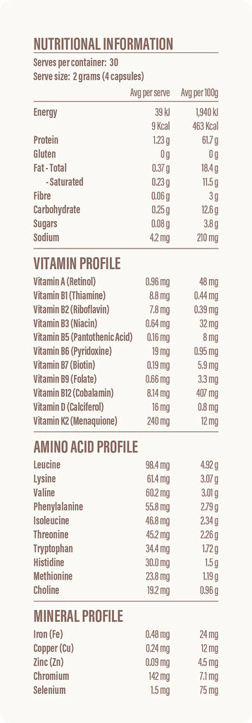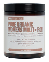 Pure Organic Women’s Multi + Iron by X50 Lifestyle is a premium, wholefood-based supplement made entirely from organic beef liver – one of the most nutrient-dense foods available. Specially crafted for women and teenage girls, this capsule formula offers a natural, bioavailable source of iron, B12, and essential vitamins to support everyday energy, vitality, and wellbeing. It’s a clean, no-fuss way to top up your nutrients and feel your best.