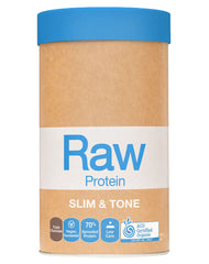 Amazonia Raw Slim & Tone Protein in Cacao & Macadamia is specifically designed to assist with healthy weight management and address the root cause of cravings. This delicious, creamy, protein supplement combines a sprouted and bio-fermented protein base with nourishing trace minerals, nutrient-dense herbs, thermogenic spices and alkalising greens to help satisy hunger, combat bad digestive bacteria, boost metabolism and assist in healthy, long-term weight management and toning, in combination with healthy eating and exercise.
