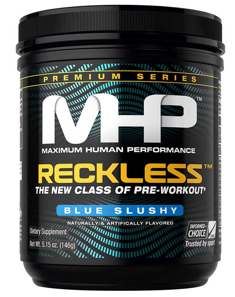 MHP’s Reckless™ goes far beyond your basic high stimulant pre-workout. Reckless is a fully loaded, university tested pre-workout engineered to improve your physical and mental performance. This pre-workout formula uses a synergistic combination of ingredients to not only give you an intense energy boost, but the strength, endurance, pumps and focus you desire without the crash* Feel the Rush! Available in Blue Slushy and Watermelon flavors.