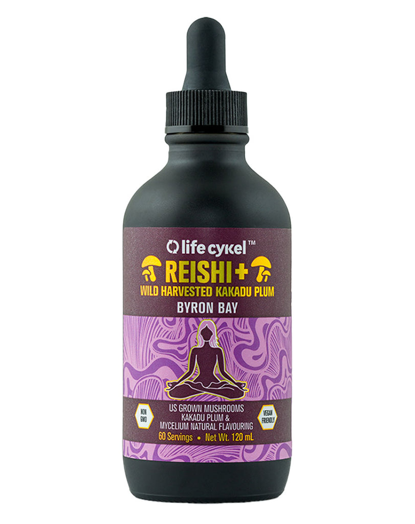 Ingredients - Distilled Water, Organic Alcohol (30%), Ganoderma lucidium. (Ganoderma lucidium. Mycelial Biomass, Ganoderma lucidium. Fruiting Body), Natural Wild Harvested Kakadu Plum.