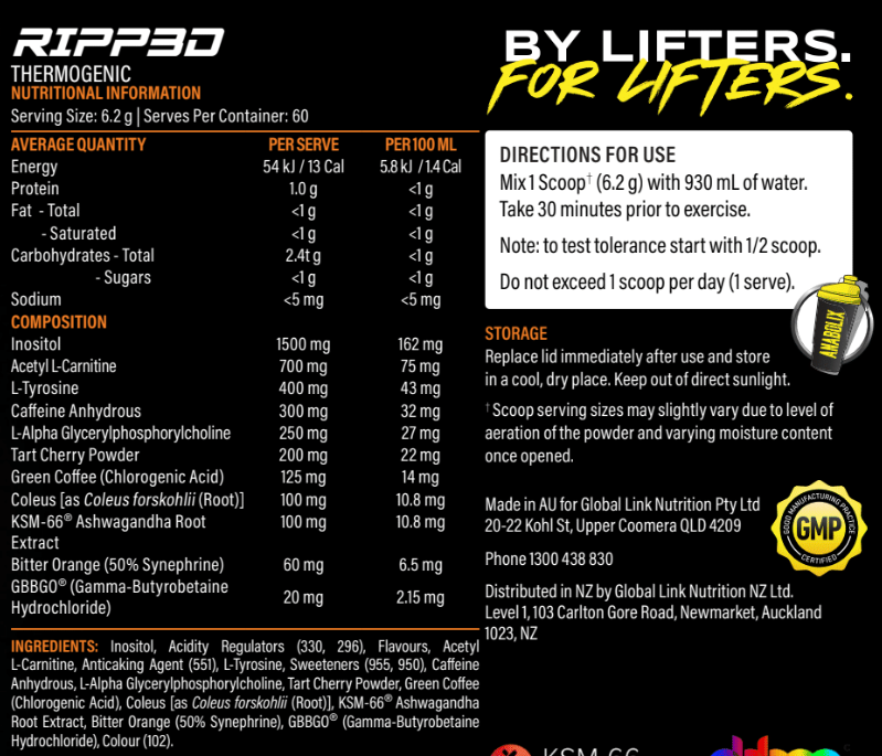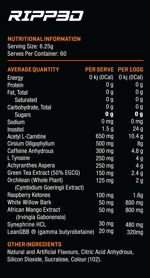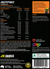 Anabolix Ripp3D is designed to maximise fat loss from all angles. Designed to increase lipolysis, enhance transportation and maximise the burning capacity of your body, Ripp3D is truly a complete thermogenic formula.