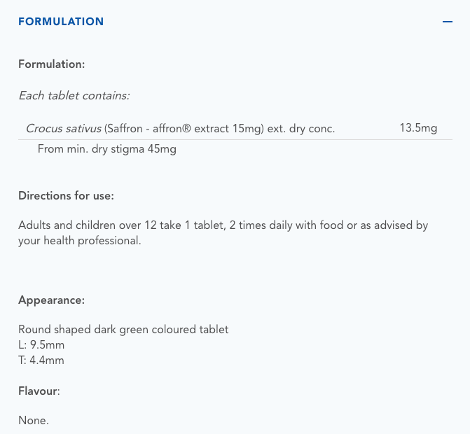 The benefits of Saffron by Caruso’s Natural Health include: