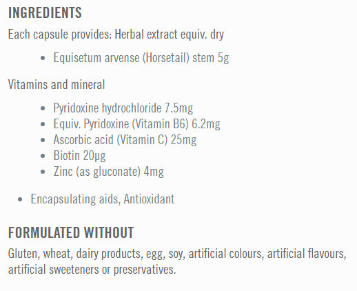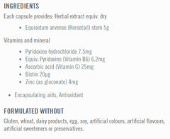 This formula combines 5 key ingredients: Horsetail herb, Biotin, Vitamins C and B6 plus Zinc. Horsetail herb contains naturally occurring...Read More