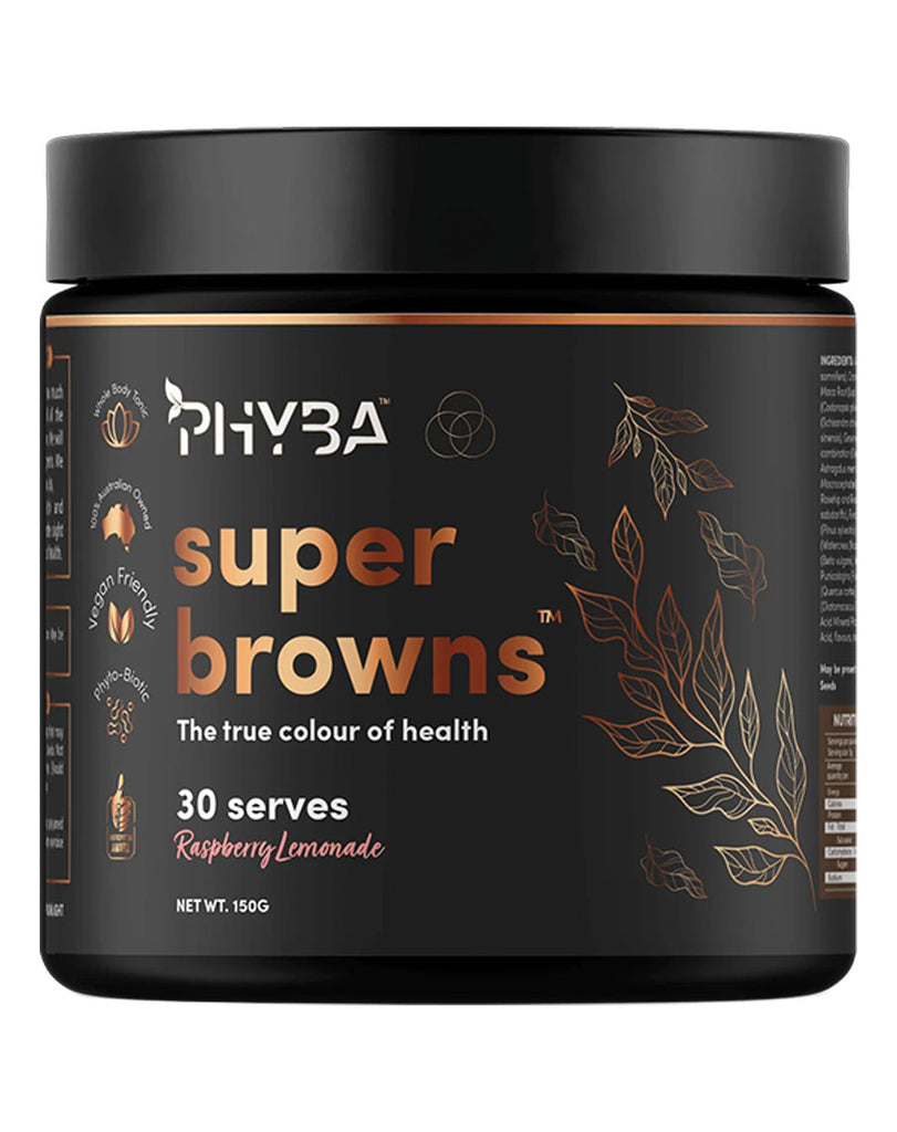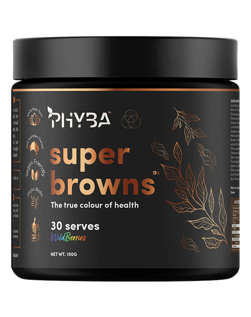 Unleash the genuine potential of a nutrient rainbow with PHYBA Super Browns—a groundbreaking twist on the well-loved greens powder infused with potent elements to elevate your health to its peak. Immerse yourself in a fusion of potent nutrients that empowers you to steer towards a healthier self.