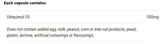 • Ubiquinol is the active and bioavailable form of CoQ10; other forms of CoQ10 are converted to ubiquinol prior to utilisation by the body.