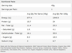 Made with the following All Natural Ingredients: BSKT Natural Protein Blend (Pepitas, Organic Fermented Golden Pea Protein), Peanuts (27%), Date Paste, Organic Coconut Syrup, Organic Tahini, Organic Cacao (5%), BSKT Vegan Chocolate (70% Cocoa, Organic Coconut Sugar, Cocoa Butter, Vanilla Extract), Natural Peanut Butter Flavour.