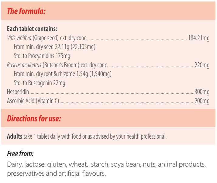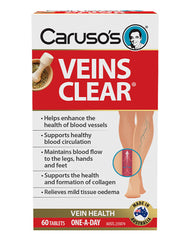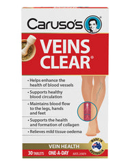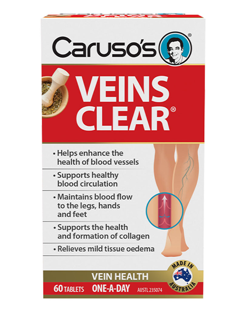 Promote optimal blood flow in peripheral areas of the body, including the feet, arms, and hands, by incorporating Caruso’s Veins Clear into your wellness routine. This herbal and nutritional blend is specifically designed to bolster the wellbeing of capillaries, veins, and other blood vessels. Harnessing the power of Butcher's broom, Grape seed, Vitamin C, and Hesperidin, Veins Clear is crafted to optimise healthy blood circulation.