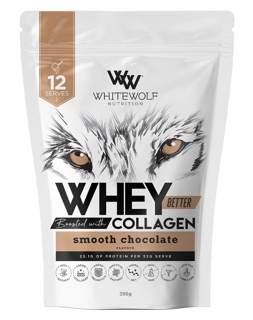 Whey Better Protein is an ultra-premium Australian grass-fed protein blend boosted with hydrolysed collagen, which may help with hair, skin and nails.