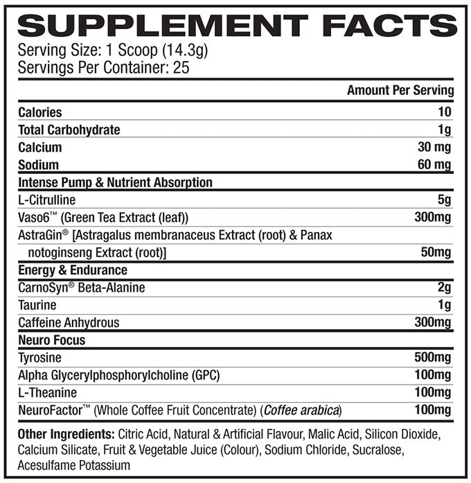 Quick Weaknesses: Stripped formula compared to Wreckage V1. Under dosed beta alanine, no BCAA, low l-theanine compared to high caffeine dosage.